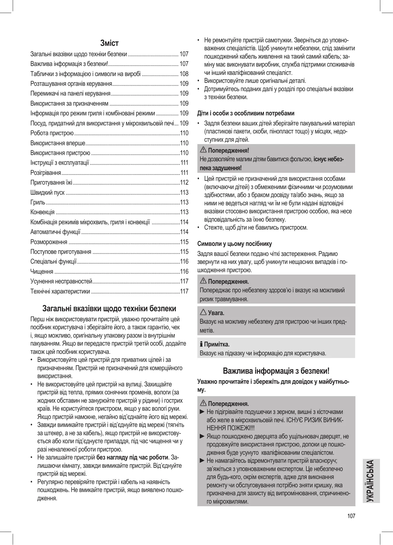 - Важлива інформація з безпеки! p. 107