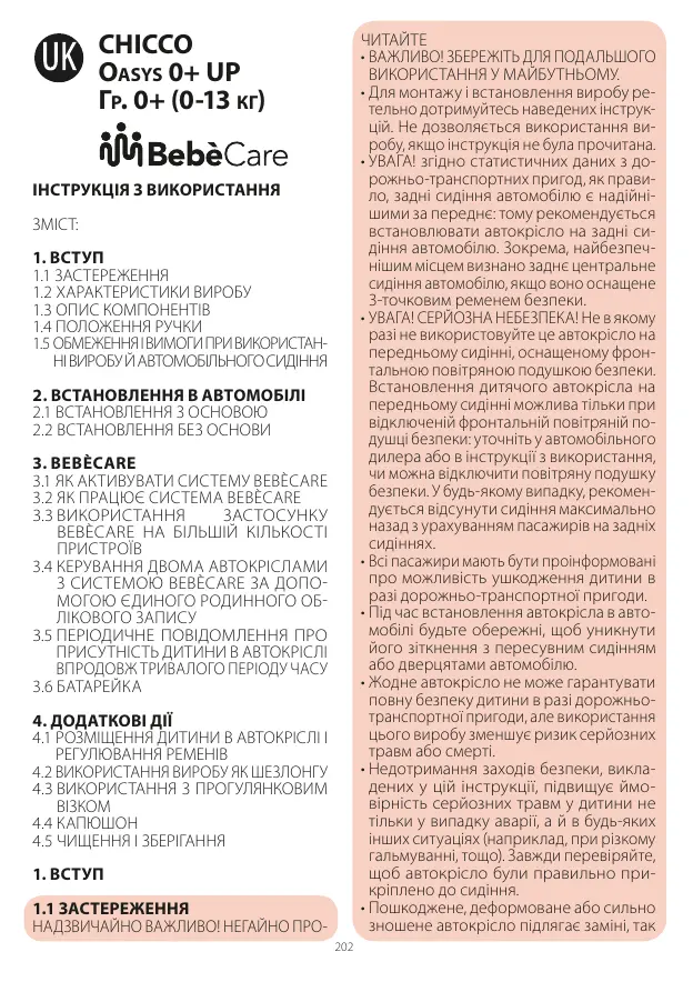 COSI OASYS UP - автокрісло CHICCO - Безкоштовний посібник користувача