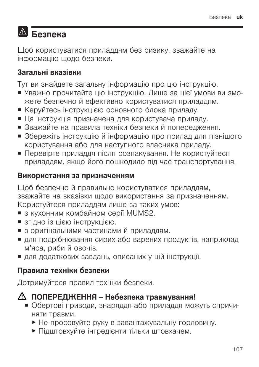 ПОСІБНИК КОРИСТУВАЧА MUMS2EW30 BOSCH