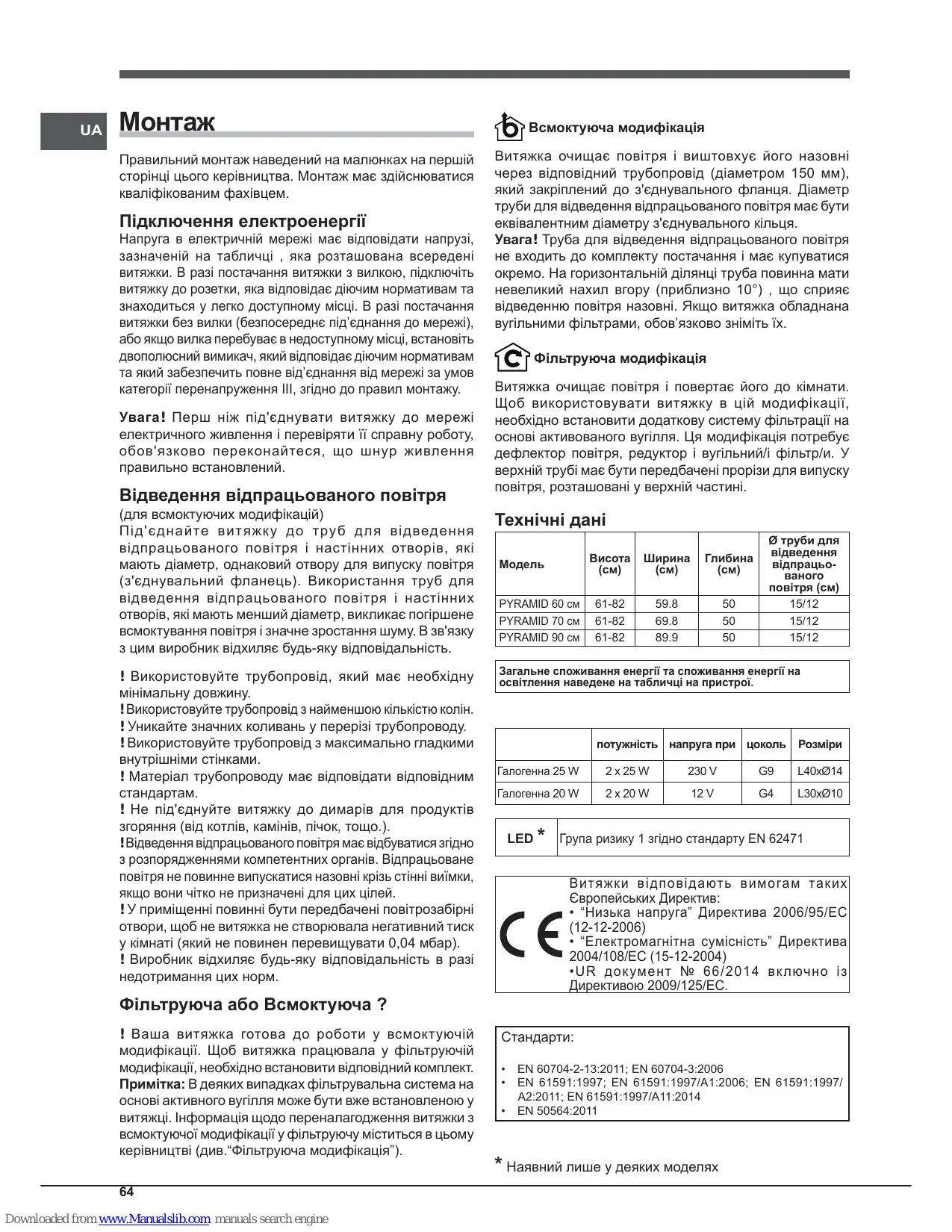 70 Downloaded from www.Manualslib.com manuals search engine A2:2011; EN 61591:1997/A11:2014 • EN 50564:2011