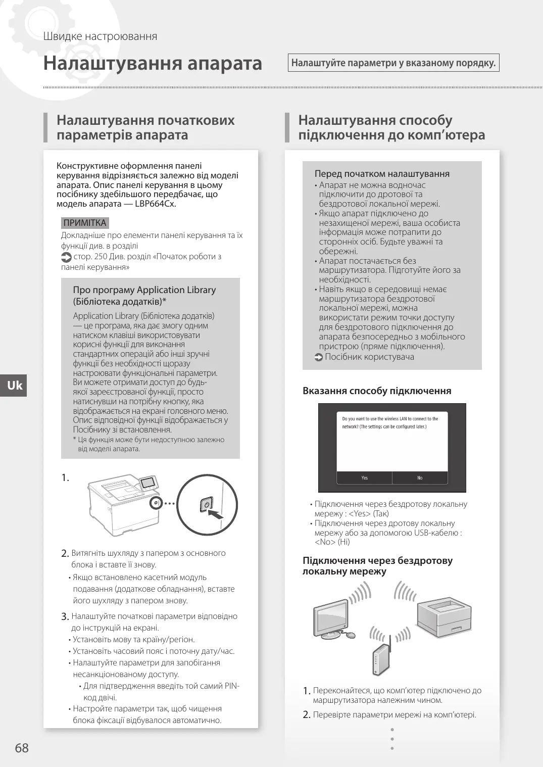 Das Design des Bedienfelds unterscheidet sich je nach Modell Ihres Geräts. Die Beschreibungen des Bedienfelds in dieser Anleitung beziehen sich hauptsächlich auf das Modell LBP664Cx. Spécifications LAN sans fil Bande(s) de fréquence: 2412-2472 MHz Puissance maximale de radiofréquence: 15.9 dBm