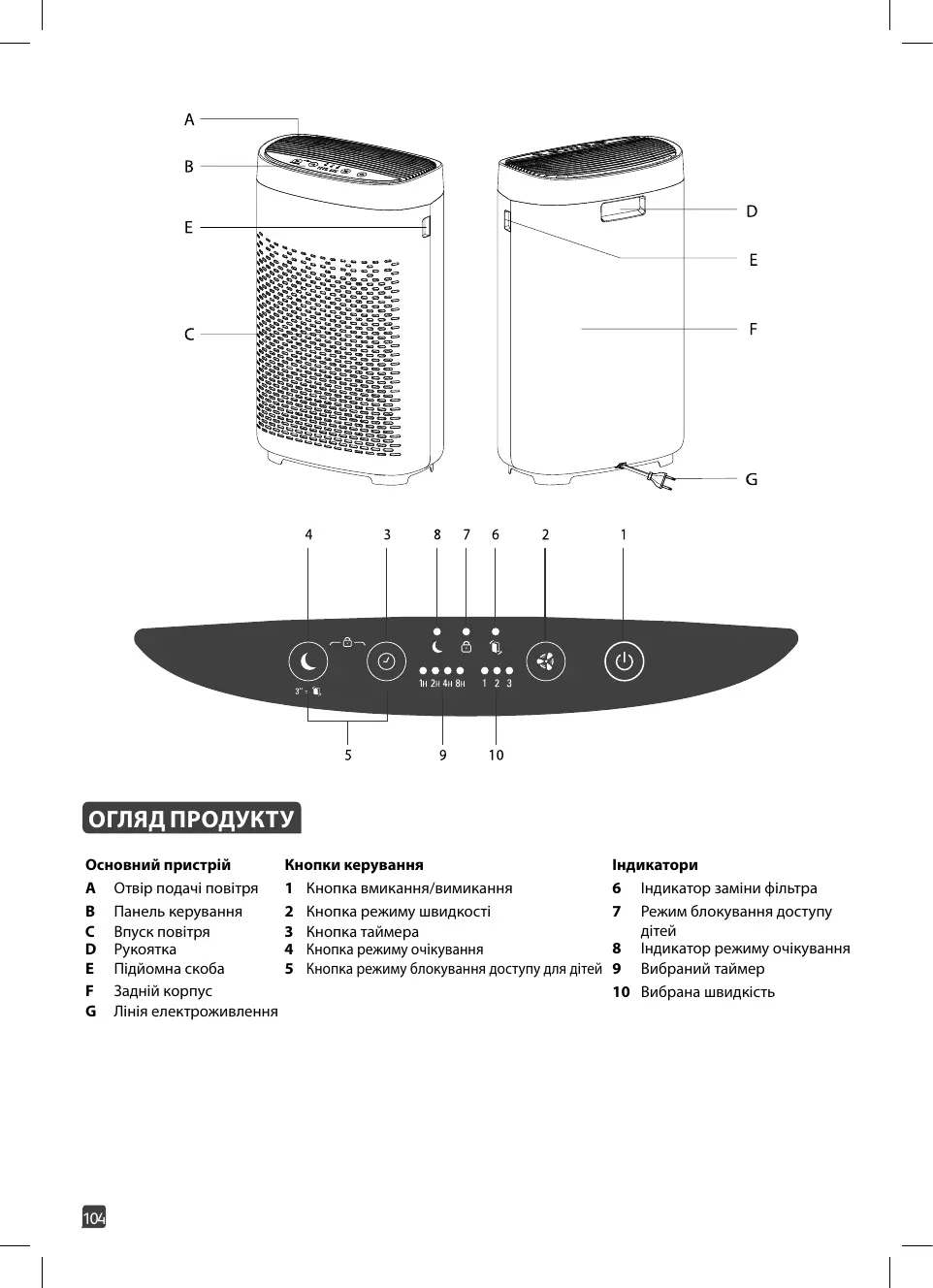 6 Indicateur de remplacement de filtre 7 Indicateur de la sécurité enfants 8 Indicateur de mode veille 9 Minuteur sélectionné 10 Vitesse sélectionnée