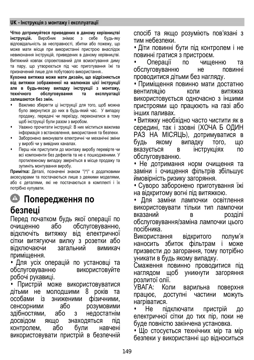 Aténgase estrictamente a las instrucciones del presente manual. Se declina cada responsabilidad por eventuales inconvenientes, daños o incendios provocados al aparato originados por la inobservancia de las instrucciones colocadas en este manual. La campana extractora ha sido ideada para la aspiración de humos y vapores producidos durante la cocción y para el uso doméstico.