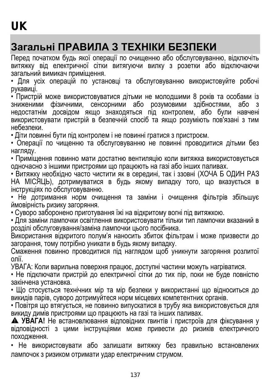 • Si la campana presenta un rendimiento escaso: Compruebe que: - La velocidad del motor seleccionada es suficiente para la cantidad de humo y vapores emitida. - La cocina está suficientemente ventilada para permitir una toma de aire. - el filtro de carbón no está gastado (campana en versión filtrante). • Si la campana se ha apagado durante el funcionamiento normal: Compruebe que: - no haya interrupciones de corriente. - el dispositivo de interrupción omnipolar no se ha disparado. En caso de eventuales anomalías en el funcionamiento, antes de dirigirse al servicio de asistencia, desconectar el aparato de la alimentación eléctrica, extrayendo el enchufe al menos durante 5 segundos, y después conectarlo nuevamente. Si la anomalía de funcionamiento no desaparece, dirigirse al servicio de asistencia.