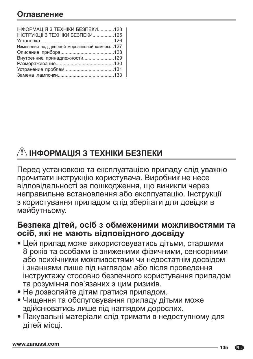 ZRG10800WA - холодильник ZANUSSI - Безкоштовний посібник користувача