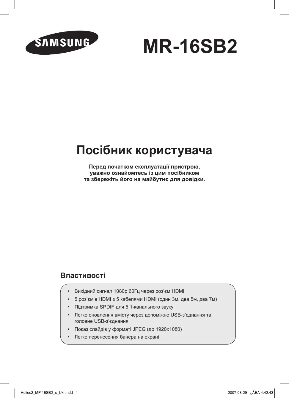 Знайдіть посібник до пристрою безкоштовно MR-16SB2 SAMSUNG у форматі PDF.