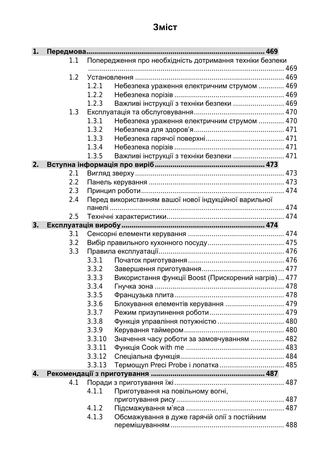 3.3.4 Zone flexible 75 3.3.5 Plaque française 75 3.3.6 Verrouillage des commandes 76 3.3.10 Temps de fonctionnement par défaut 79 3.3.11 Fonction « Cook with me » 80 3.3.12 Fonction spéciale 81 3.3.13 Preci Probe et louche 82 4. Lignes directrices pour cuisiner 84 4.1 Astuces de cuisson 84 4.1.1 Faire mijoter, cuire du riz 84 4.1.2 Saisir un steak 84 4.1.3 Pour faire sauter des aliments 84 4.2 Détection des petits articles 83 5. Réglages de la chaleur 85 6. Entretien et nettoyage 86 7. Conseils et astuces 87