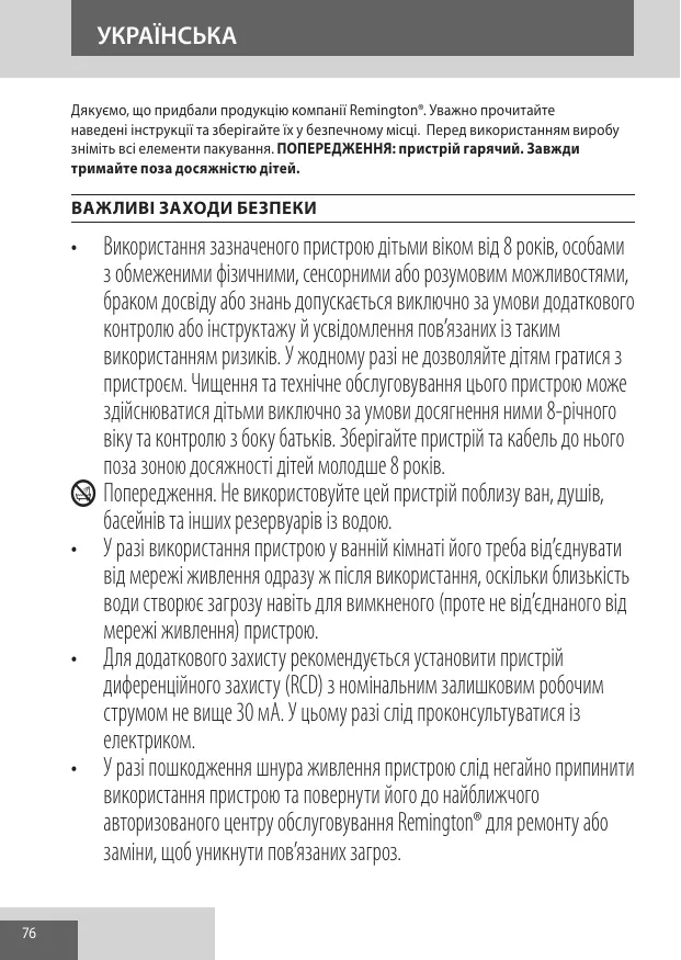 ПОСІБНИК КОРИСТУВАЧА 59001HYDRALUXEPRO REMINGTON