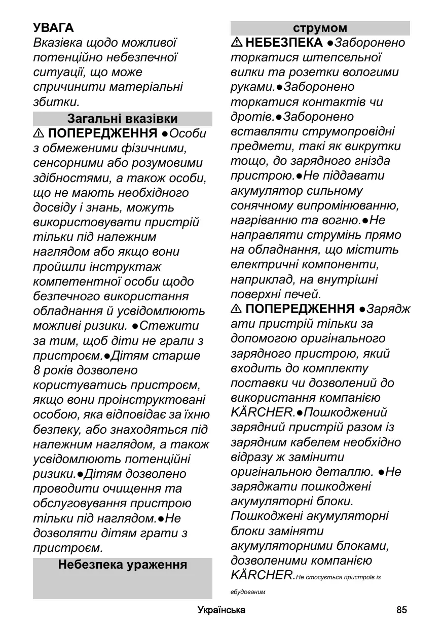 ПОСІБНИК КОРИСТУВАЧА ASPIRATEURRECHARGEABLE KARCHER