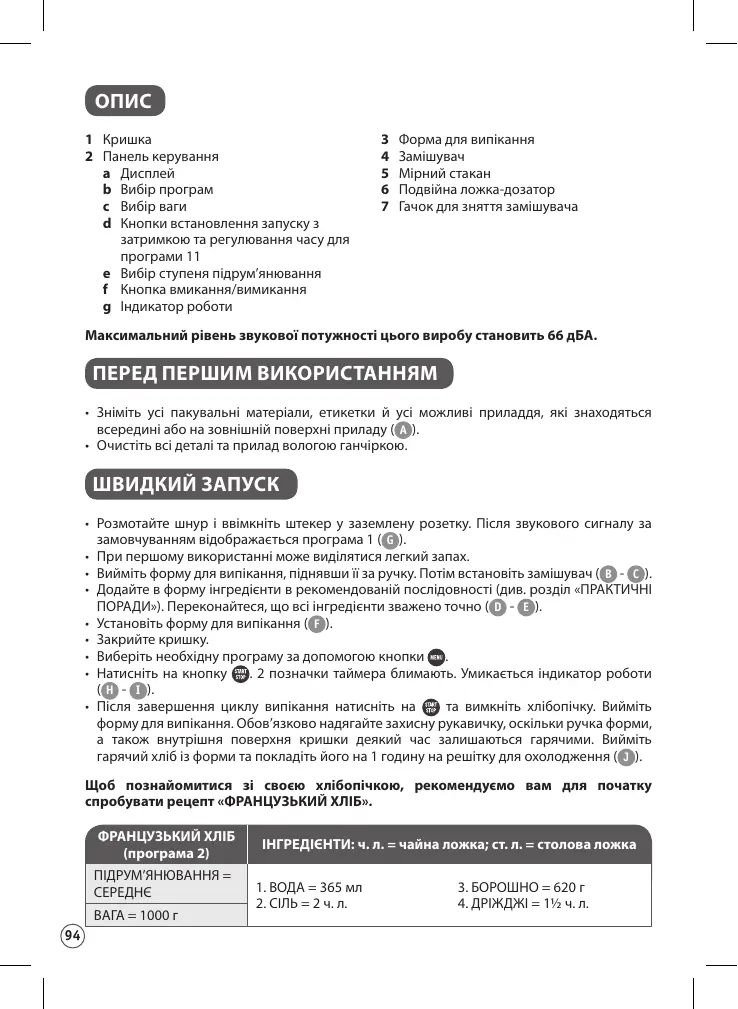 ПОСІБНИК КОРИСТУВАЧА PAIN DORE 1kg OW21 MOULINEX