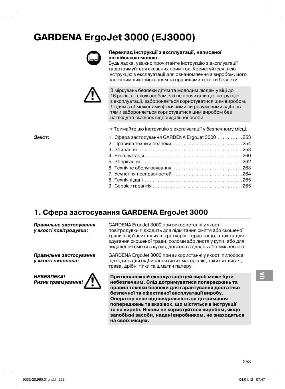 ПОСІБНИК КОРИСТУВАЧА Ergojet 3000 GARDENA