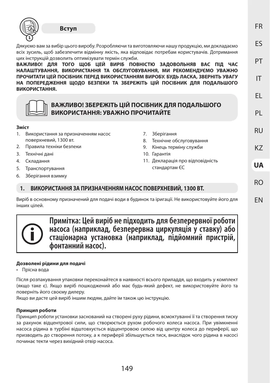 1300 JET SM5I-3 6000 L/H - Pompe arrosage manuelle STERWINS - Безкоштовний посібник користувача