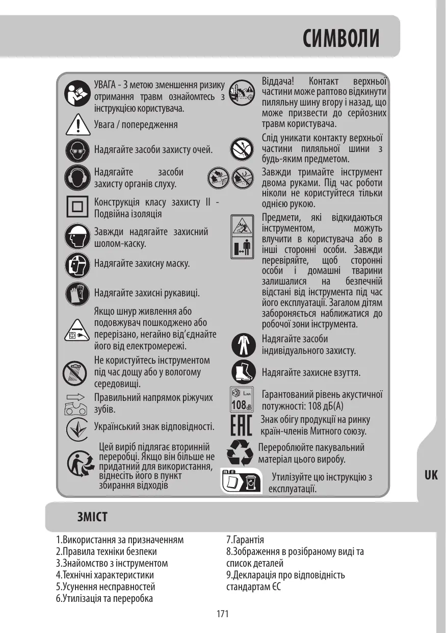 ECS2-45.3 - електрична ланцюгова пила STERWINS - Безкоштовний посібник користувача