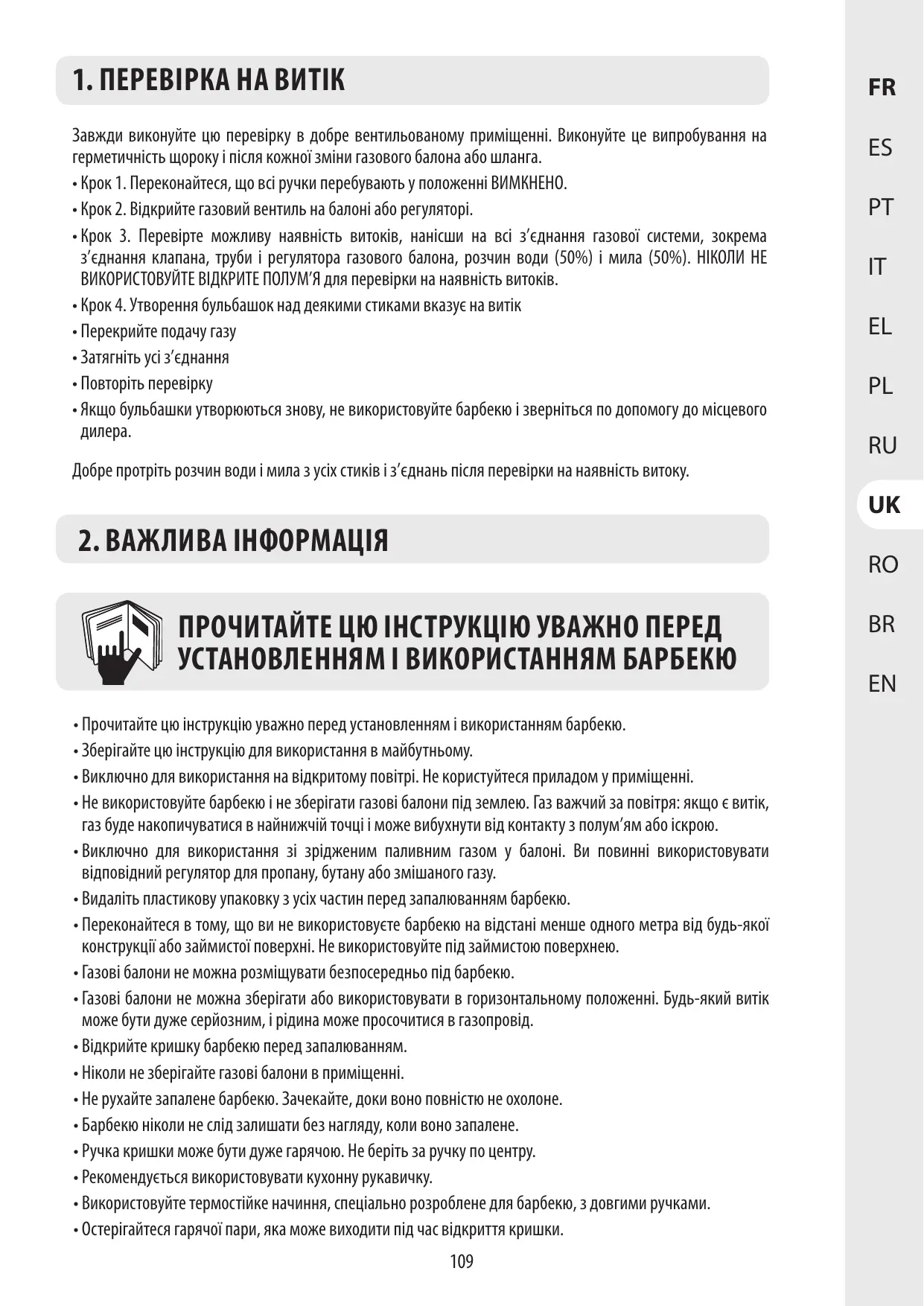 + Avant d'utiliser votre barbecue faîtes un test de fuite. C'est le seul moyen fiable de détecter une fuite de gaz sur les joints ou les connexions après le montage.