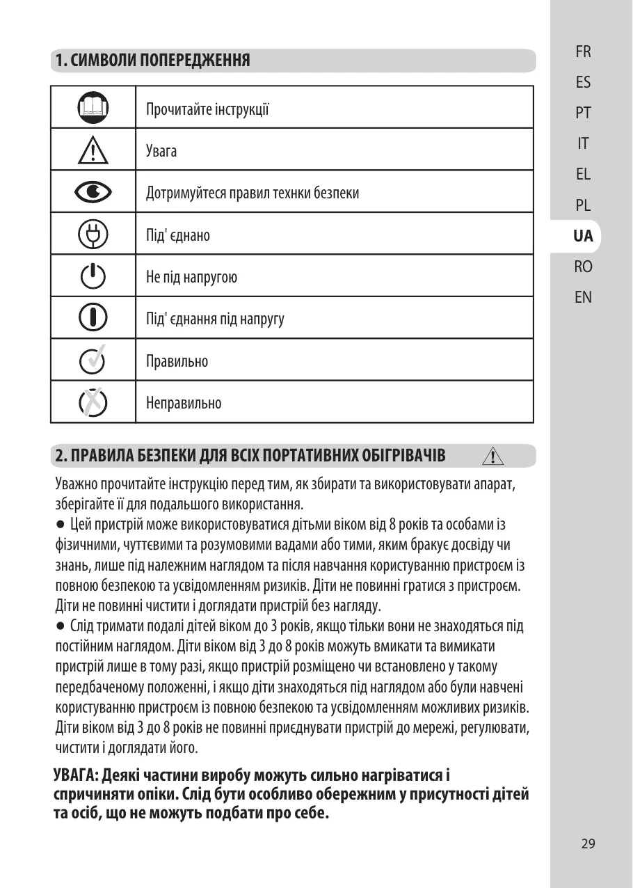 ATTENTION - Certaines parties de ce produit peuvent devenir très chaudes et provoquer des brûlures. Il faut prêter une attention particulière en présence d'enfants et de personnes vulnérables.