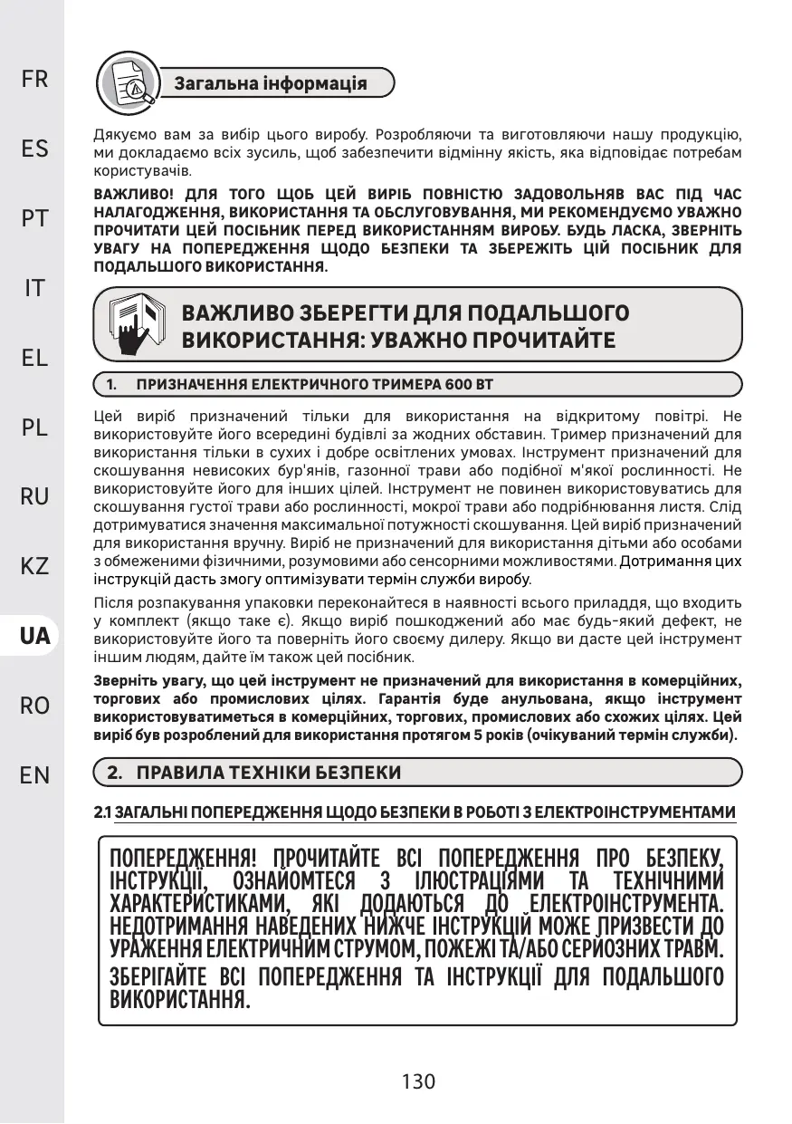 EGT2-30.4 - Електричний тример STERWINS - Безкоштовний посібник користувача