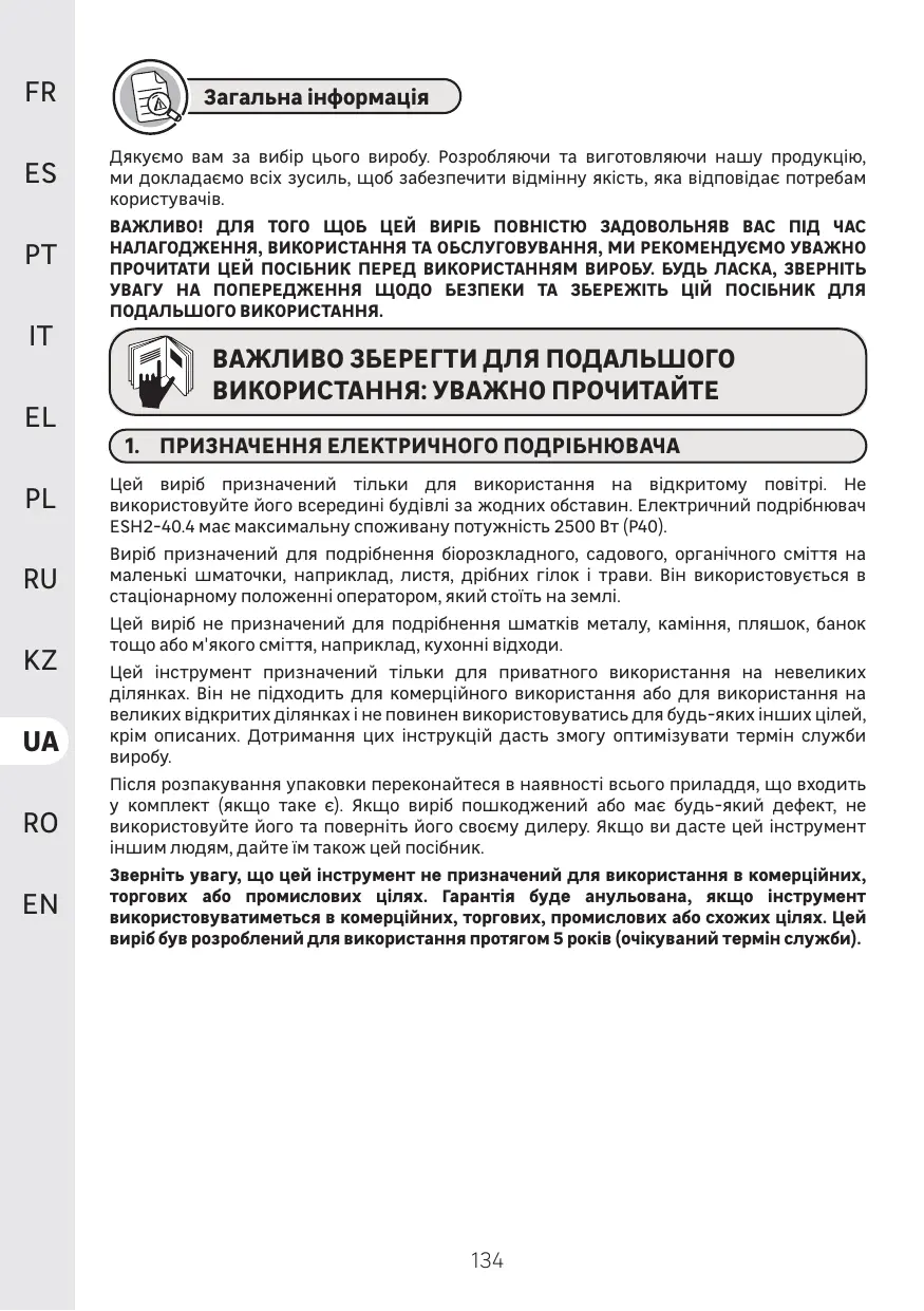 ESH2-40.4 - Broyeur de végétaux STERWINS - Безкоштовний посібник користувача