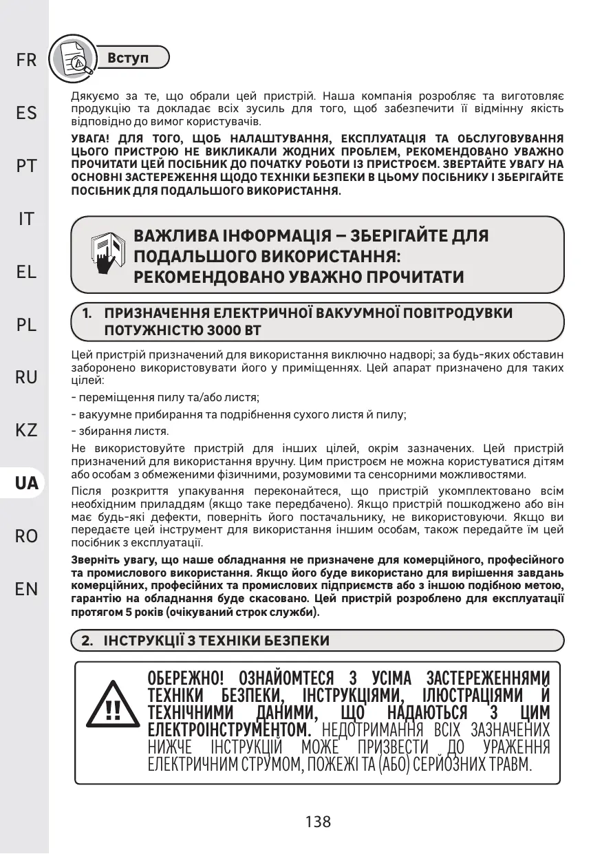 ПОСІБНИК КОРИСТУВАЧА Blower 3000W EVB2.4 STERWINS