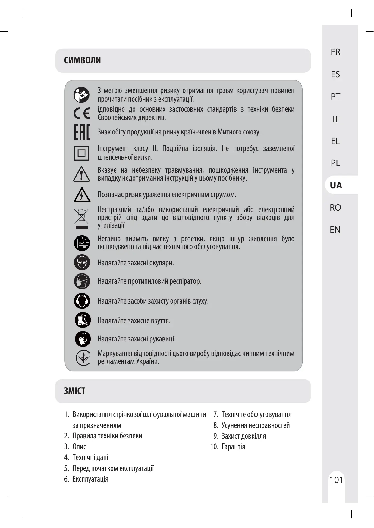 - Ne touchez pas la bande abrasive quand elle est en mouvement.