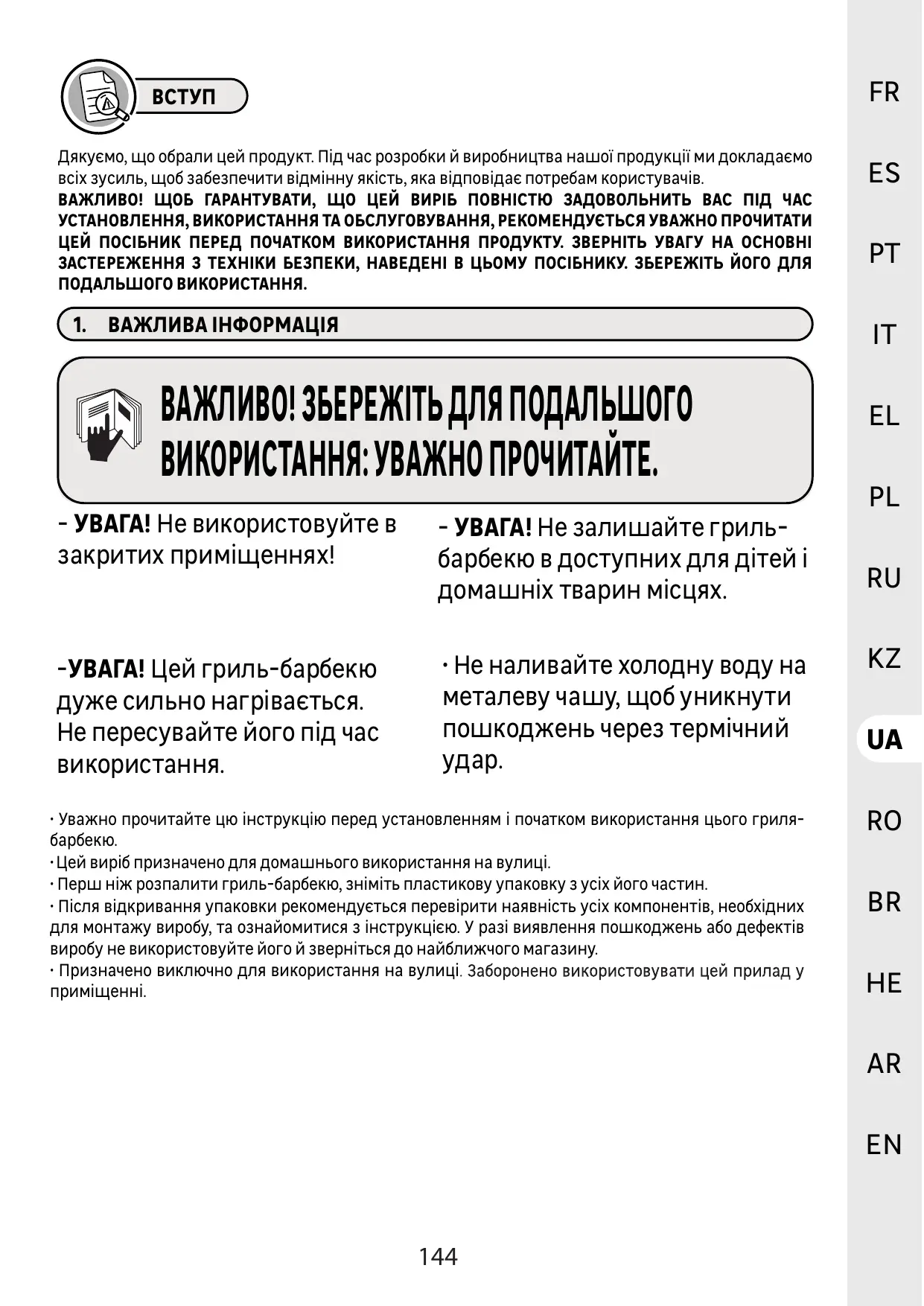 - Certaines parties de ce barbecue deviennent très chaudes. Prenez soin en présence d'enfants, de personnes âgées et d'animaux.