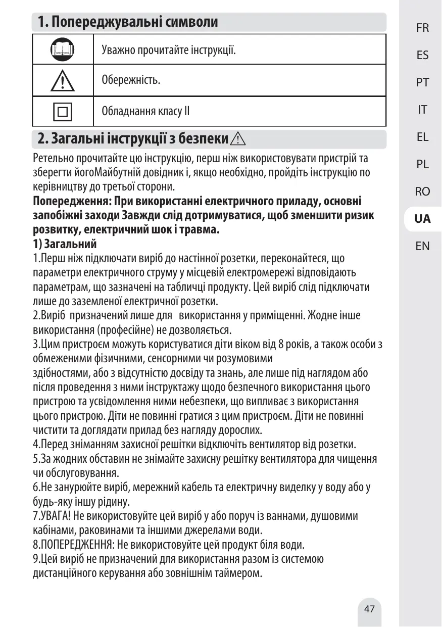 14.MISE EN GARDE : Évitez tout contact avec des pièces mobiles. N'insérez jamais vos doigts, toute autre partie du corps ou tout objet à travers la grille du ventilateur. Les adultes doivent faire particulièrement attention lorsqu'ils utilisent ce ventilateur à proximité des enfants.
