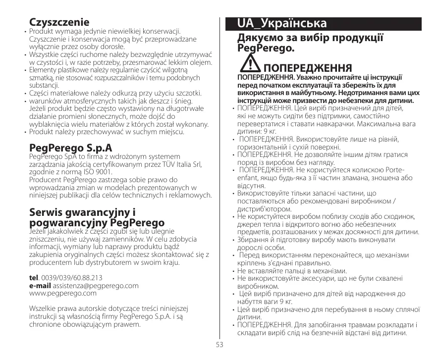 Porte-enfant - Візочки PEG PEREGO - Безкоштовний посібник користувача