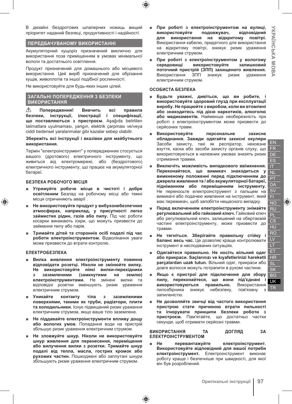 ПОСІБНИК КОРИСТУВАЧА RY36HTX65A RYOBI