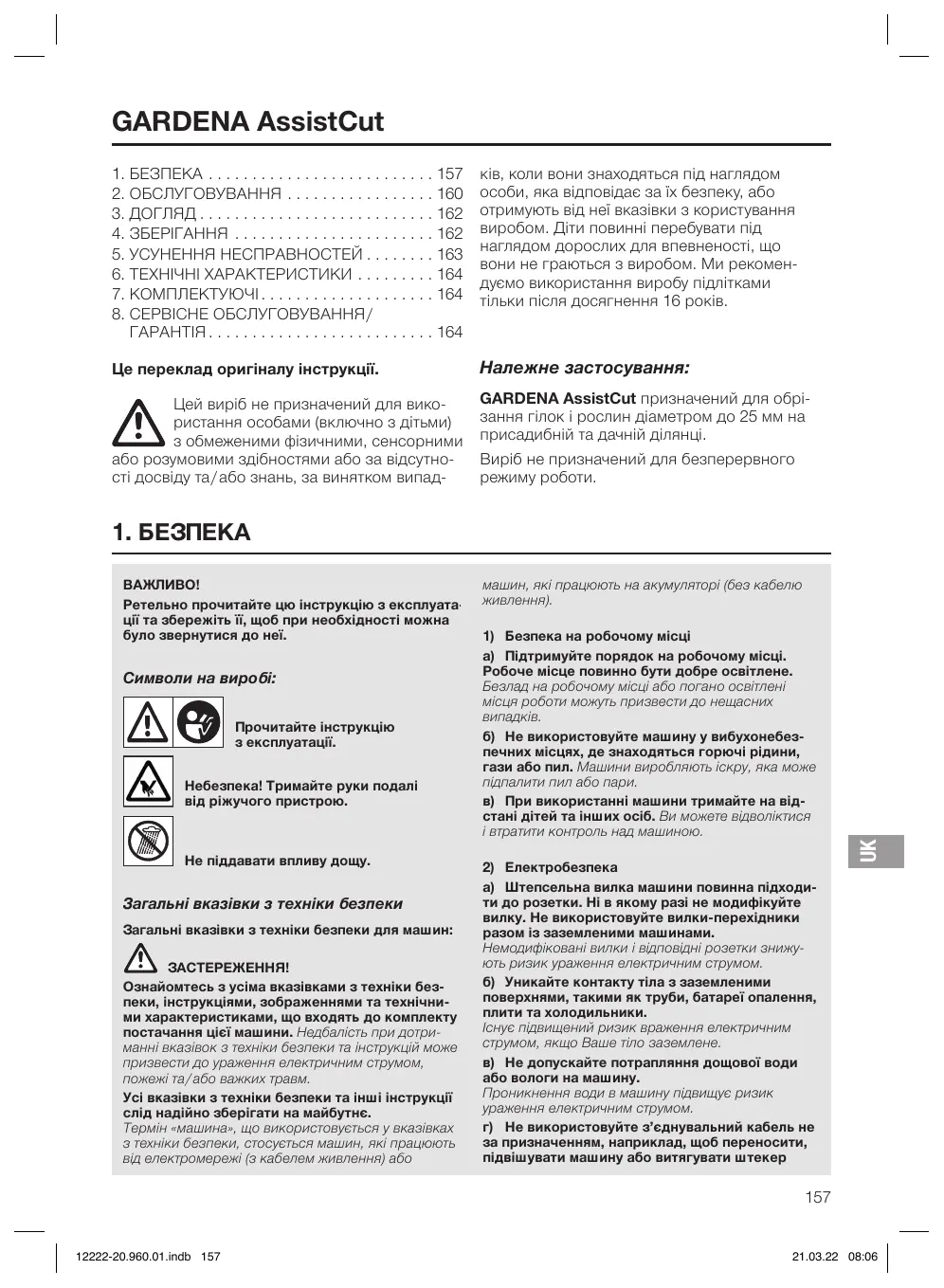 ПОСІБНИК КОРИСТУВАЧА 12222 GARDENA