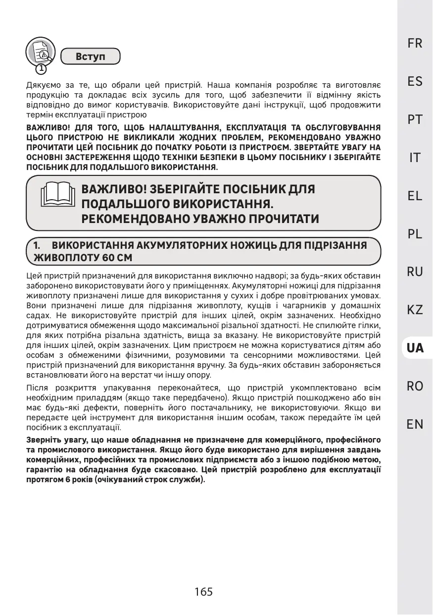 40VHT2-60.1 - Ножиці для живоплоту STERWINS - Безкоштовний посібник користувача