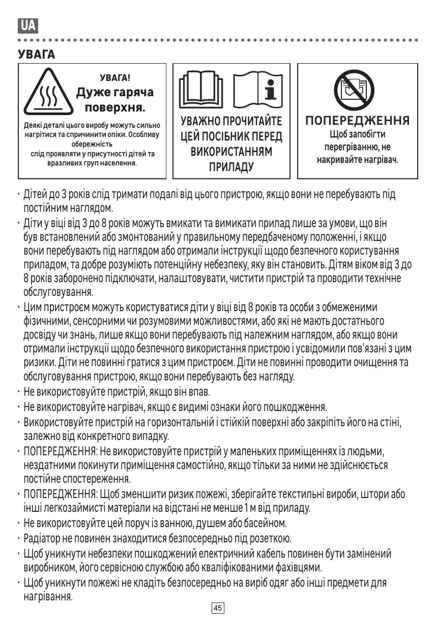 + AVERTISSEMENT: Ce radiateur n'est pas équipé d'un dispositif de contrôle de la température ambiante.