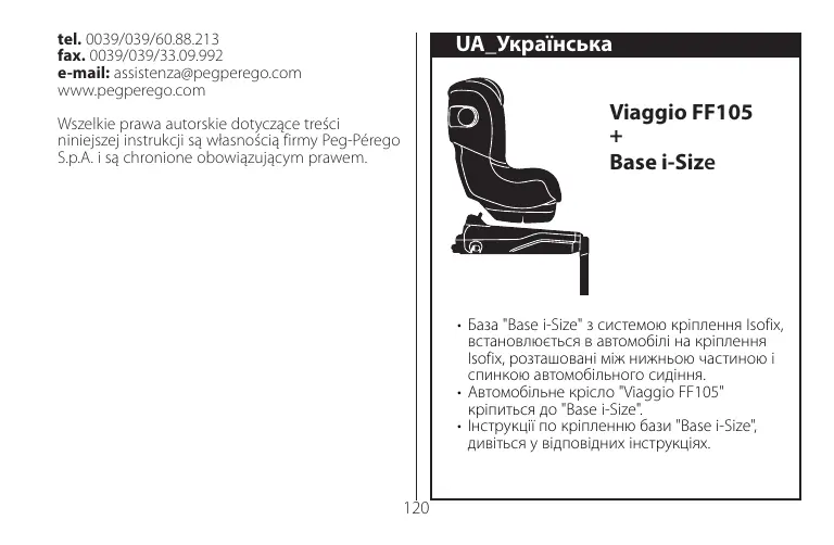 Viaggio FF105 - автокрісло PEG PEREGO - Безкоштовний посібник користувача
