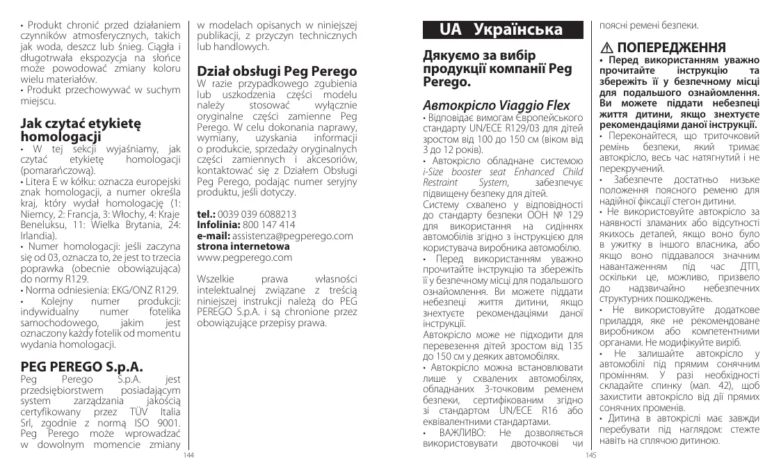 Viaggio Flex - автокрісло PEG PEREGO - Безкоштовний посібник користувача