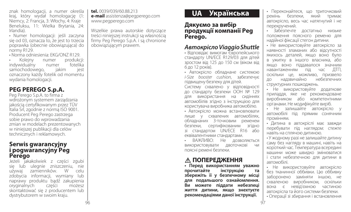 Viaggio Shuttle - автокрісло PEG PEREGO - Безкоштовний посібник користувача