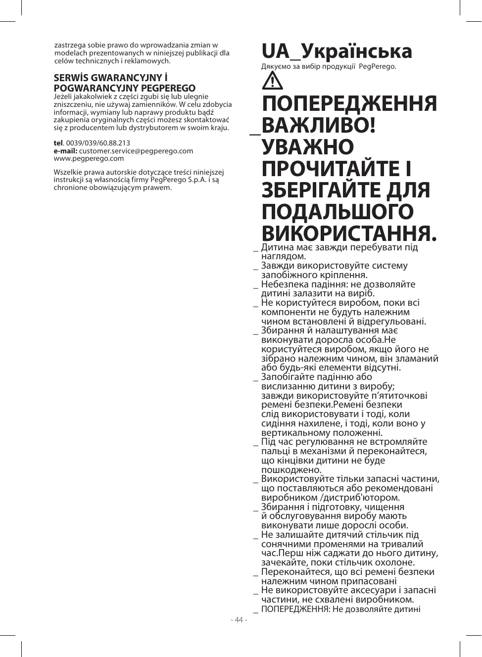 Prima Pappa follow me - Високий стілець PEG PEREGO - Безкоштовний посібник користувача