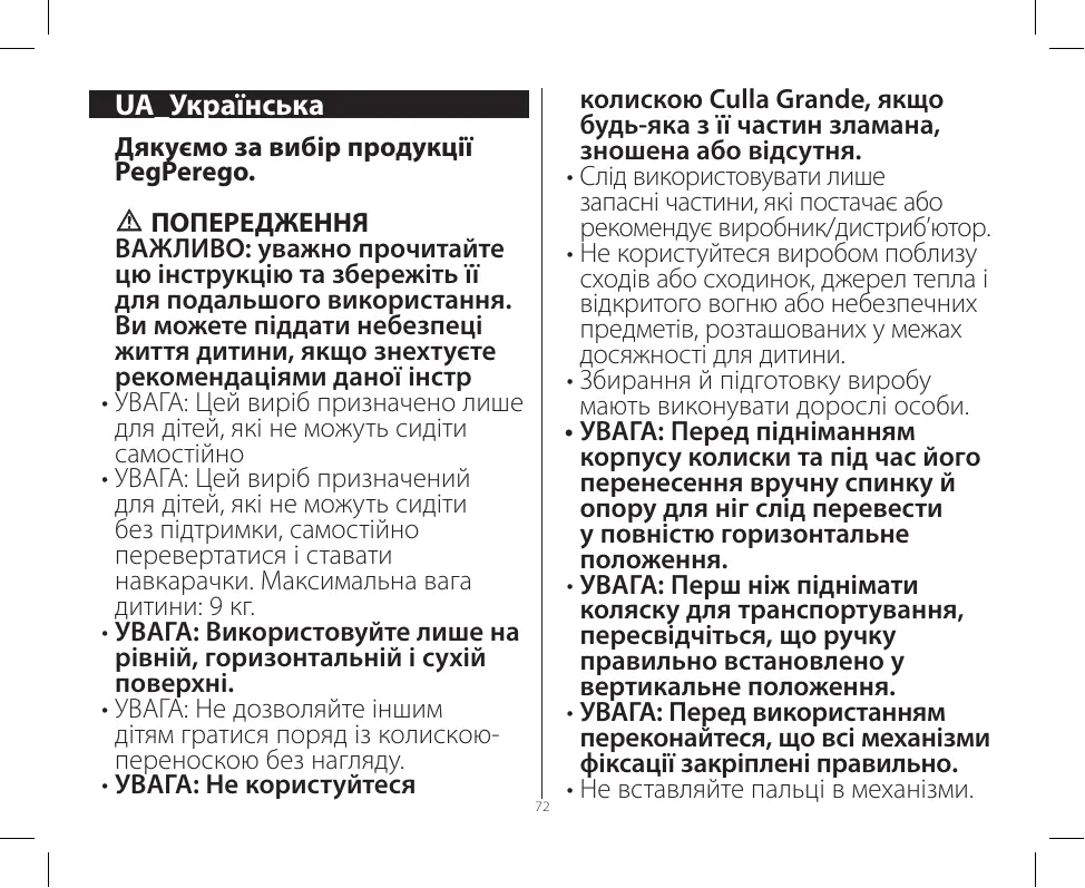Culla Grande - Візочки та аксесуари PEG PEREGO - Безкоштовний посібник користувача