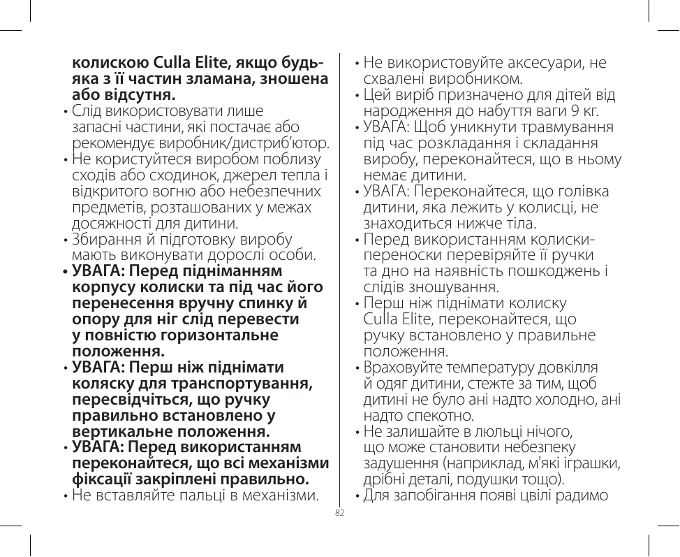 Culla Elite - Візочки та аксесуари PEG PEREGO - Безкоштовний посібник користувача