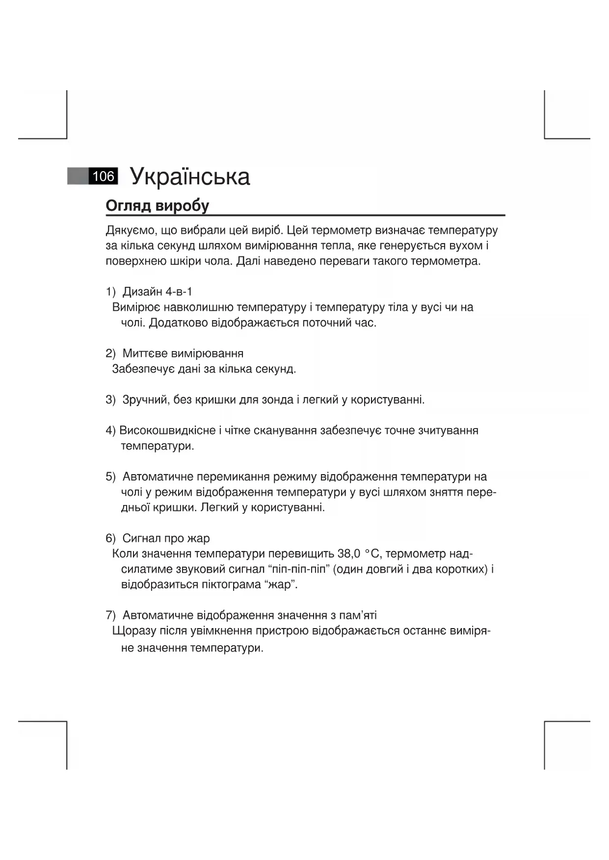 чолі у режим відображення температури у вусі шляхом зняття пере-