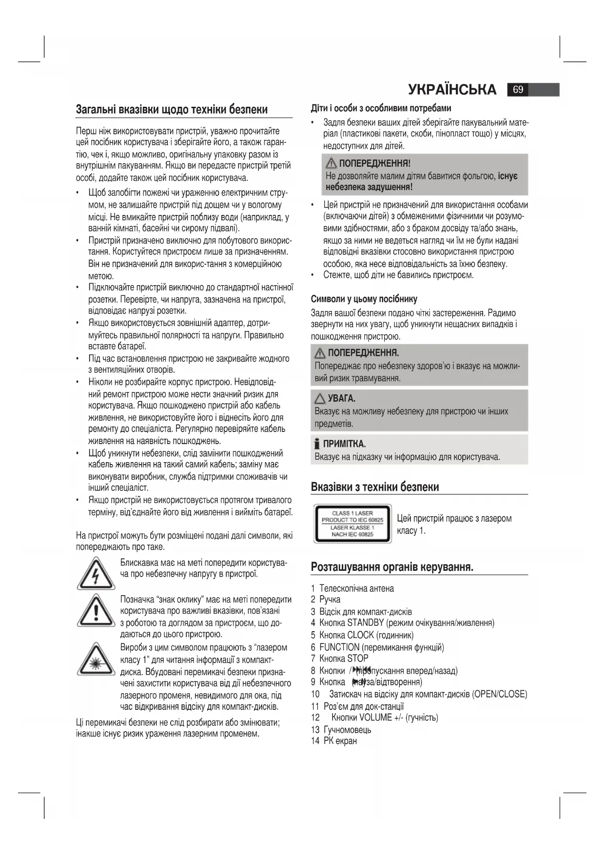 Зміст Розташування органів керування стор. 3 Посібник користувача стор. 69 Технічні характеристики стор. 75 РУССКИЙ
