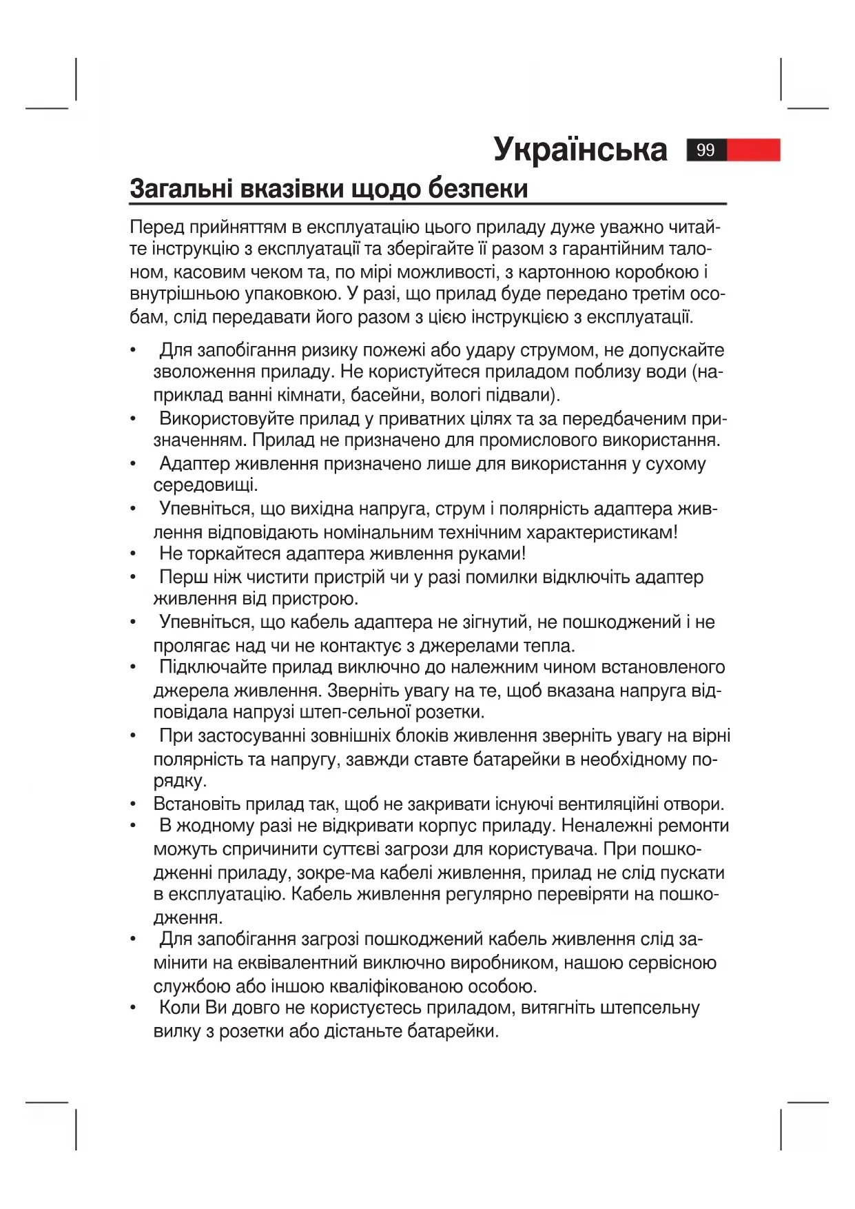 Перед прийняттям в експлуатацію цього приладу дуже уважно читай-
