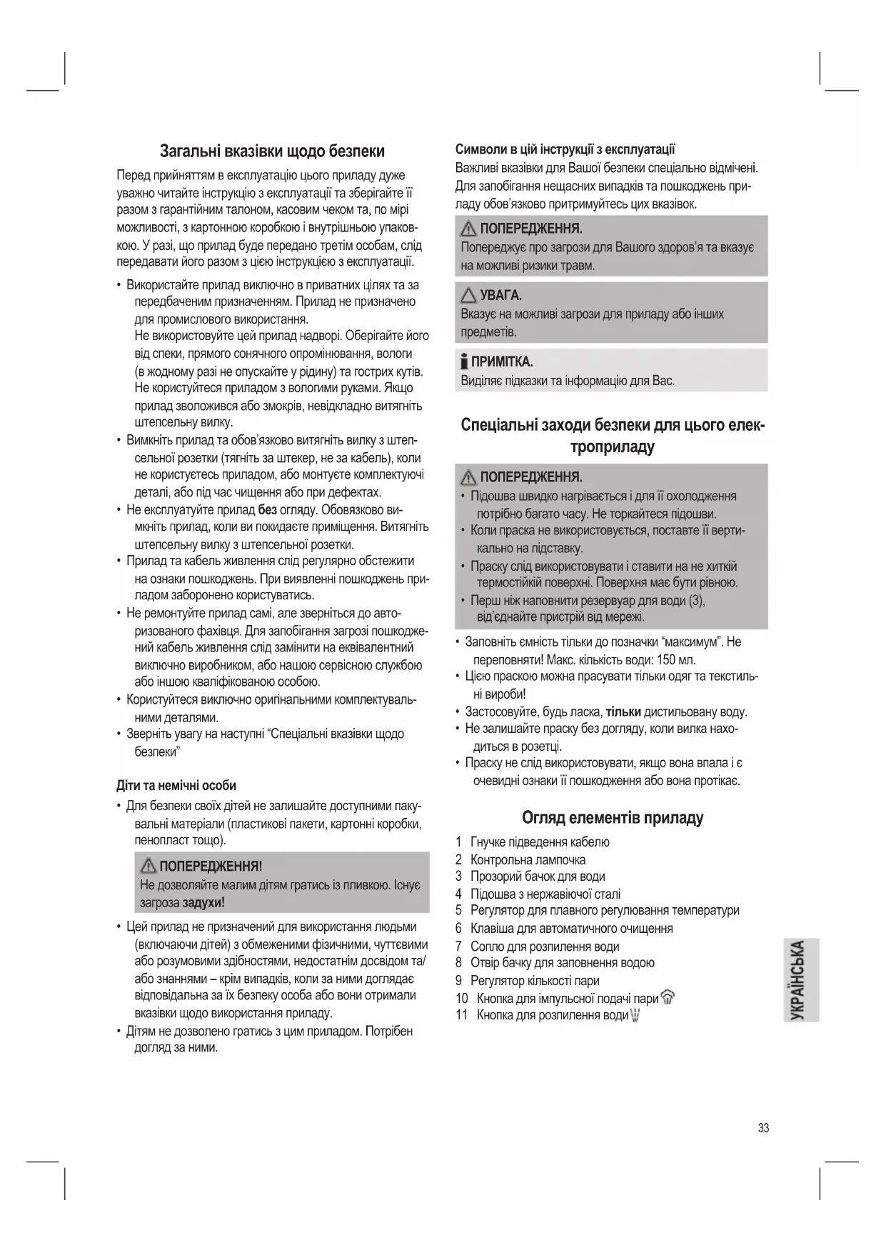 • Дітям не дозволено гратись з цим приладом. Потрібен