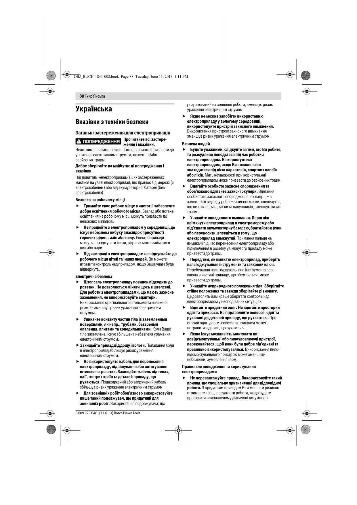 OBJ_BUCH-1841-002.book Page 87 Tuesday, June 11, 2013 1:11 PM88 | Українська 3 609 929 C46 | (11.6.13) Bosch Power Tools Українська