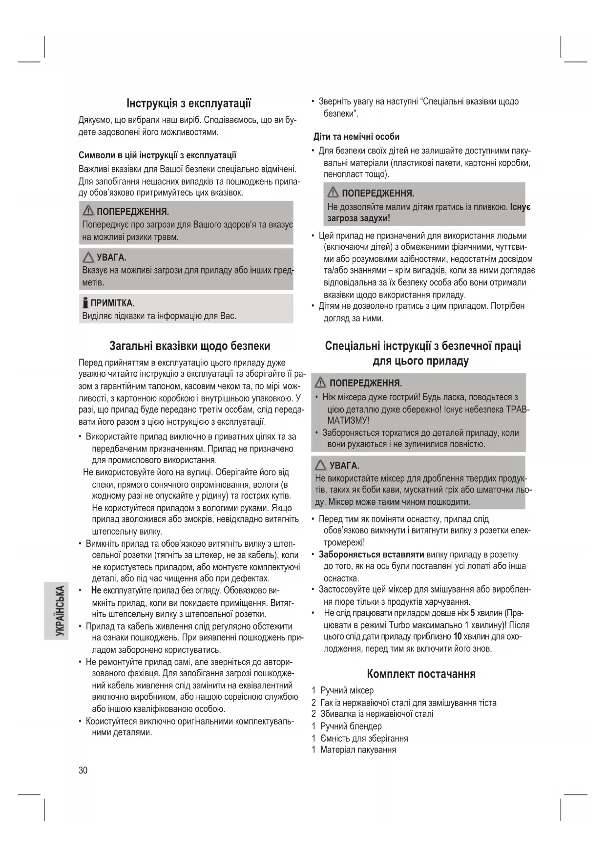 • Ніж міксера дуже гострий! Будь ласка, поводьтеся з