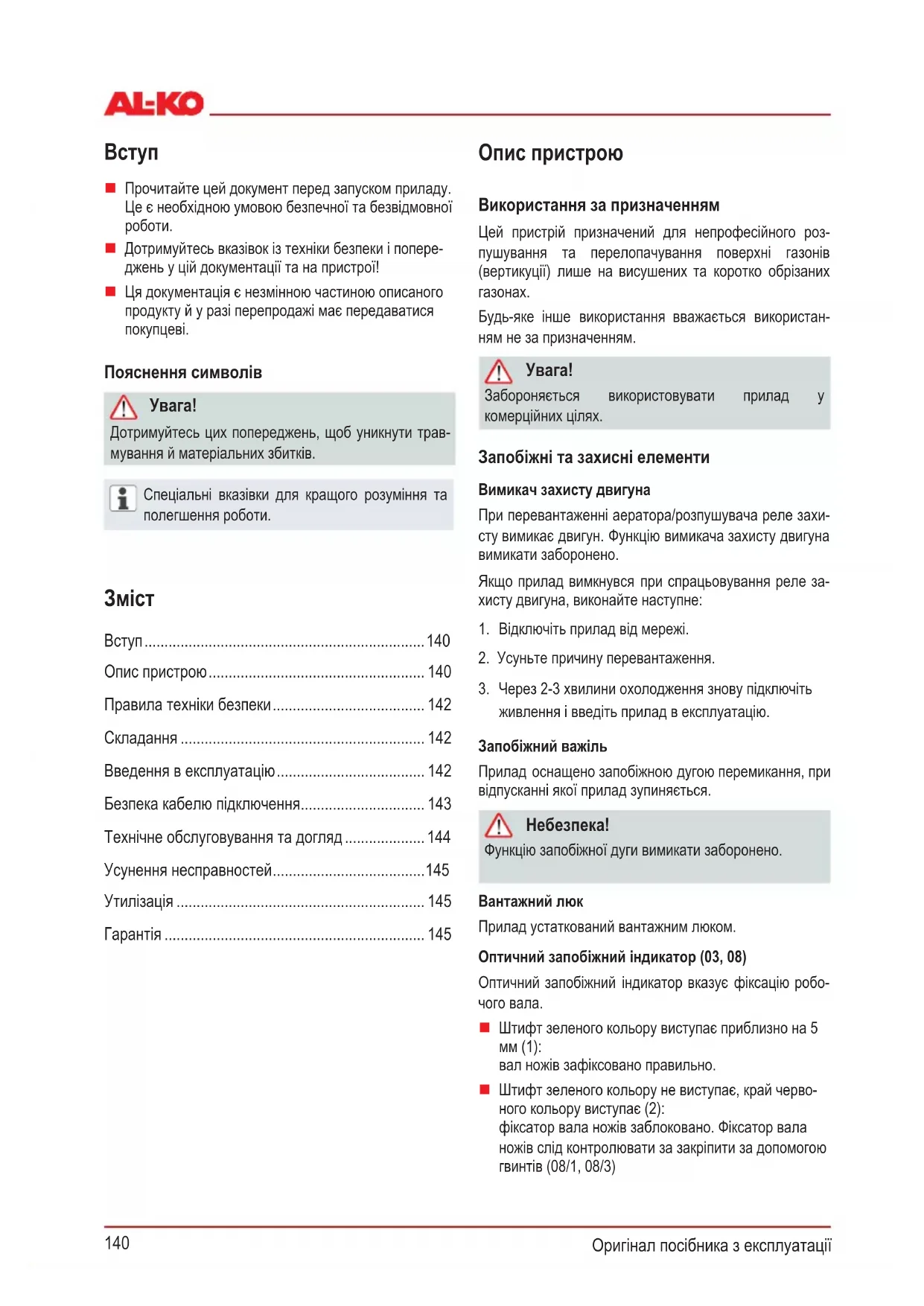 Завантажте інструкції для вашого газонокосарка у форматі PDF безкоштовно! Знайдіть свій посібник Combi Care 38 E - AL-KO і поверніть собі контроль над електронним пристроєм. На цій сторінці опубліковані всі документи, необхідні для використання вашого пристрою. Combi Care 38 E бренду AL-KO.