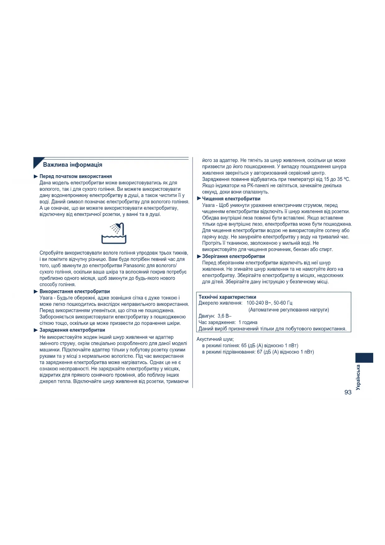 гарячу воду. Не занурюйте електробритву у воду на тривалий час.