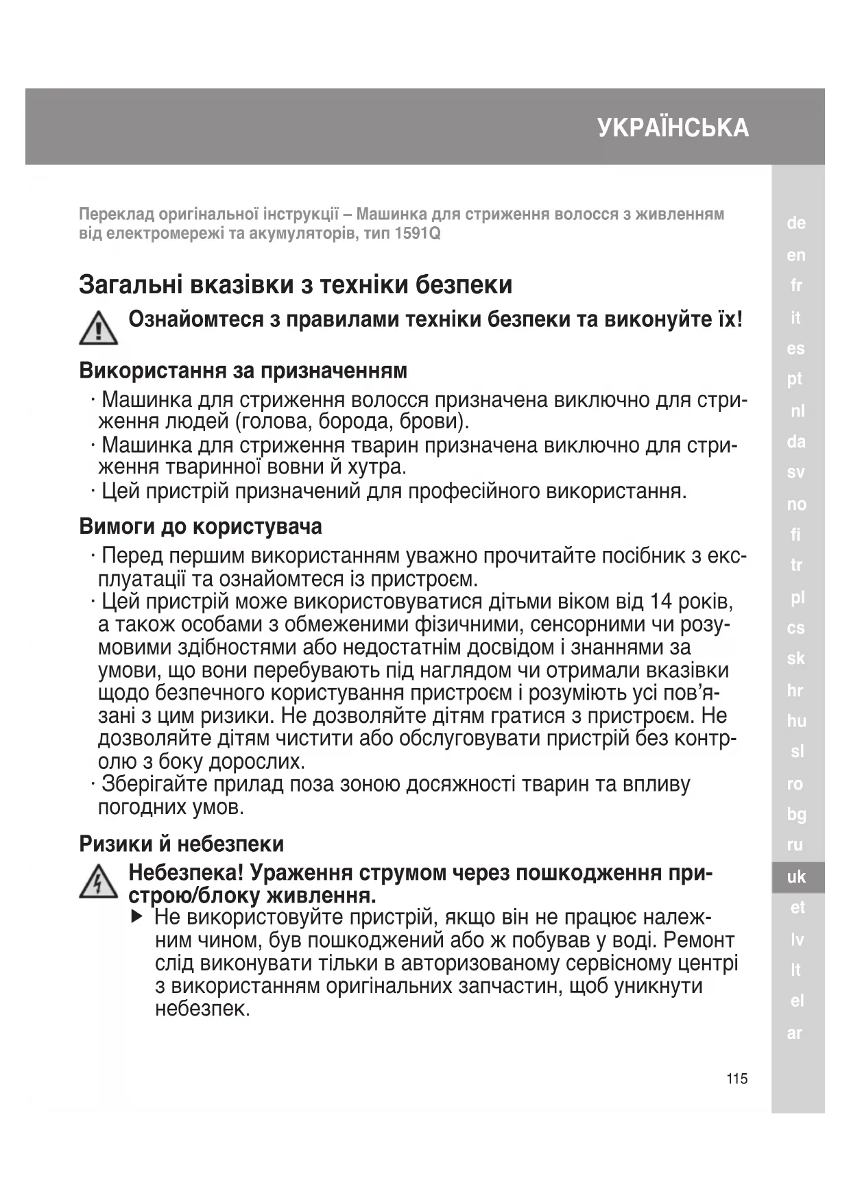 Переклад оригінальної інструкції – Машинка для стриження волосся з живленням