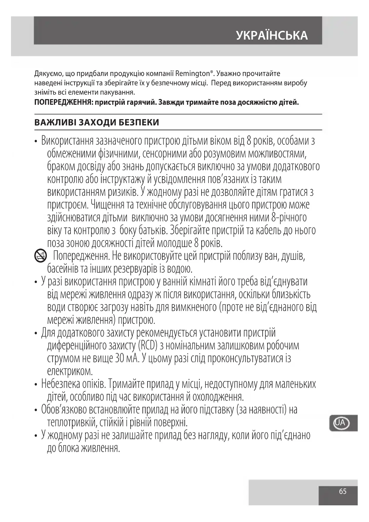 Дякуємо, що придбали продукцію компанії Remington®. Уважно прочитайте