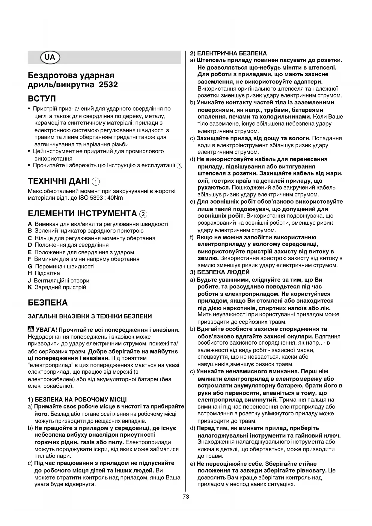 ПОСІБНИК КОРИСТУВАЧА 2532 AA SKIL