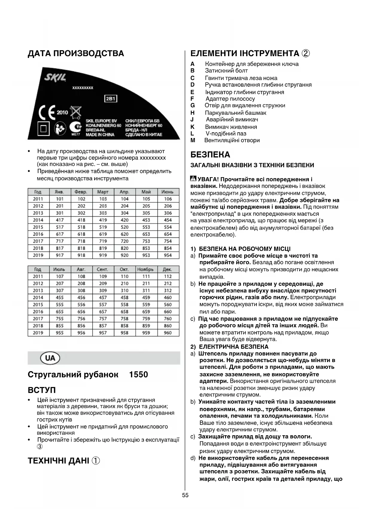 ПОСІБНИК КОРИСТУВАЧА 1550 AA SKIL