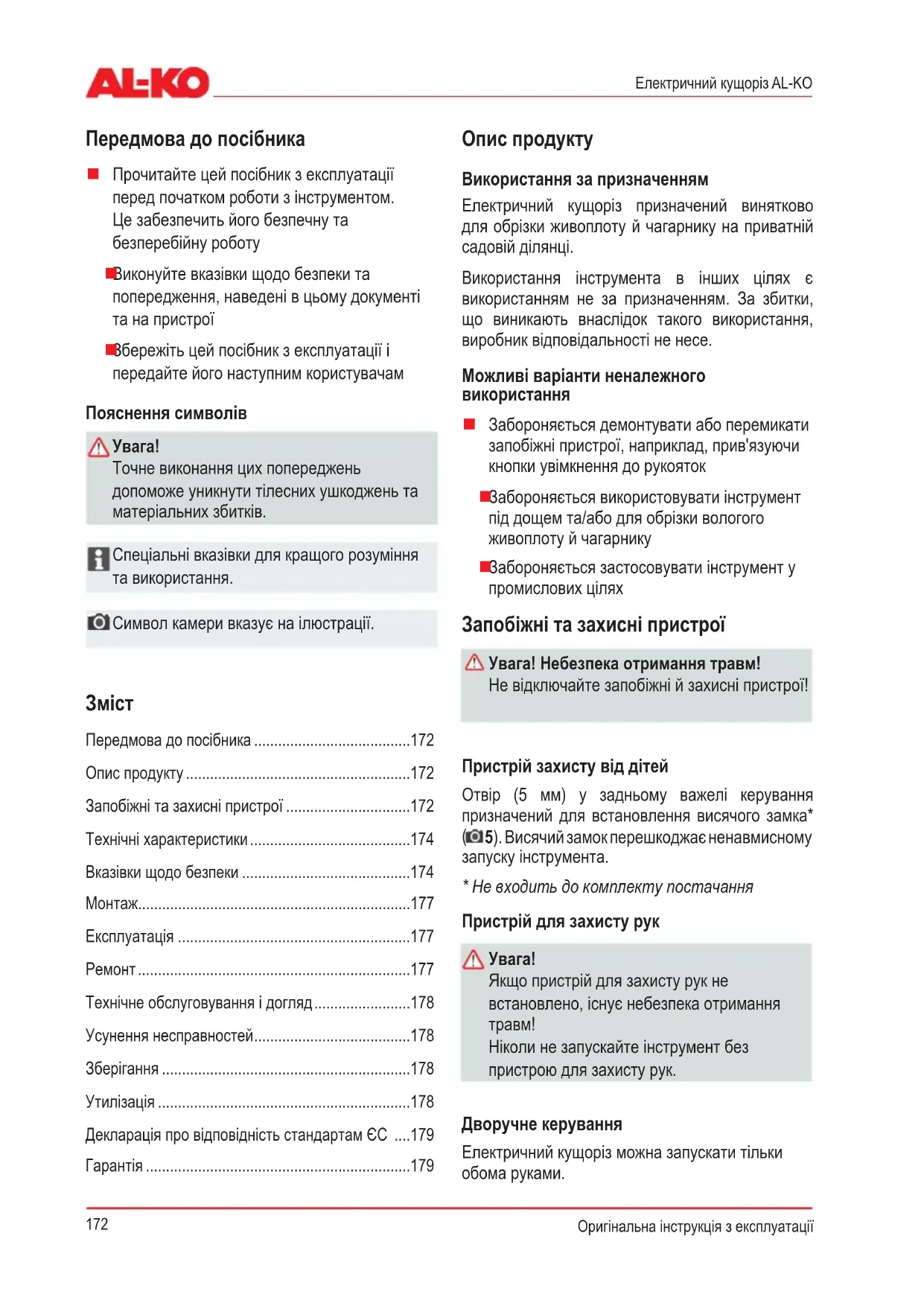 UA: Інструкція з експлуатації 172