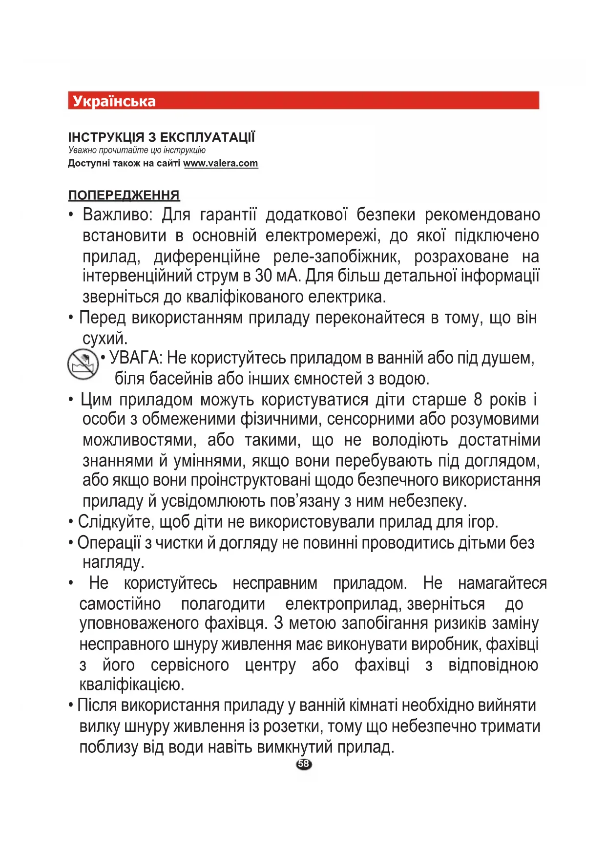 • УВАГА: Не користуйтесь приладом в ванній або під душем,